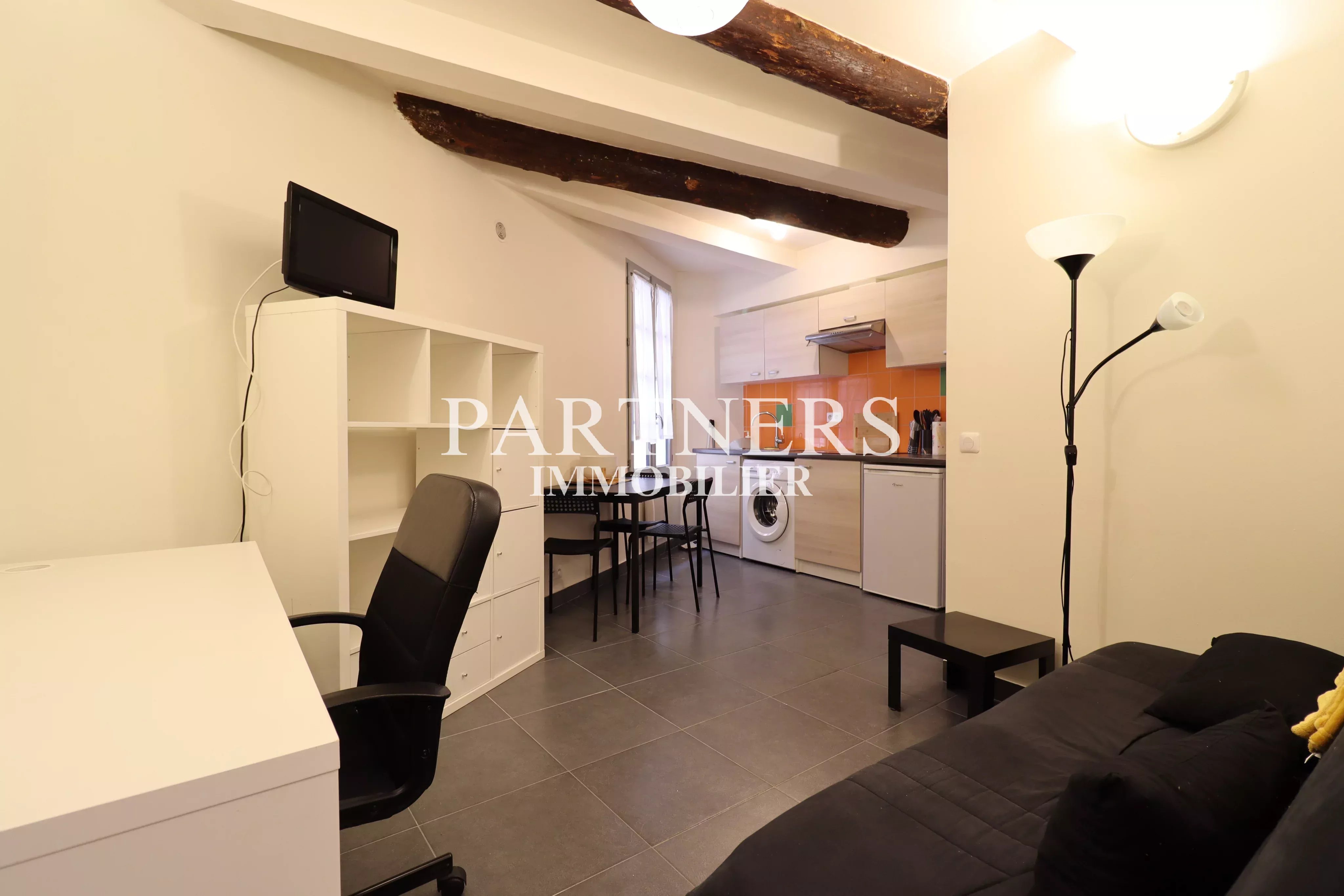 Partners immobilier vous présente à la location meublée au rez-de-chaussée d'un immeuble situé rue pavillon, un T1bis de 26,18m².